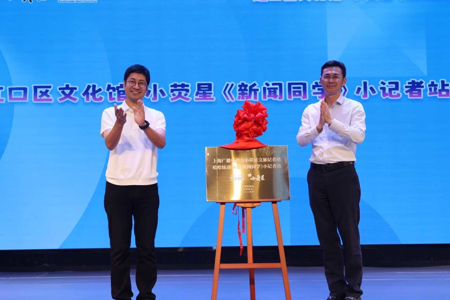 虹口区文化馆-小荧星《新闻同学》小记者站的建立,旨在引导青少年走进虹口、记录虹口、传播虹口,以“虹口有戏”百年戏剧纪念展为起点,成为城市文化的“小观察员”与“小代言人”。